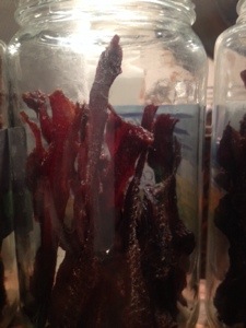 Then in 6-10 hours, the jerky will be good n dry and ready to store in jars.