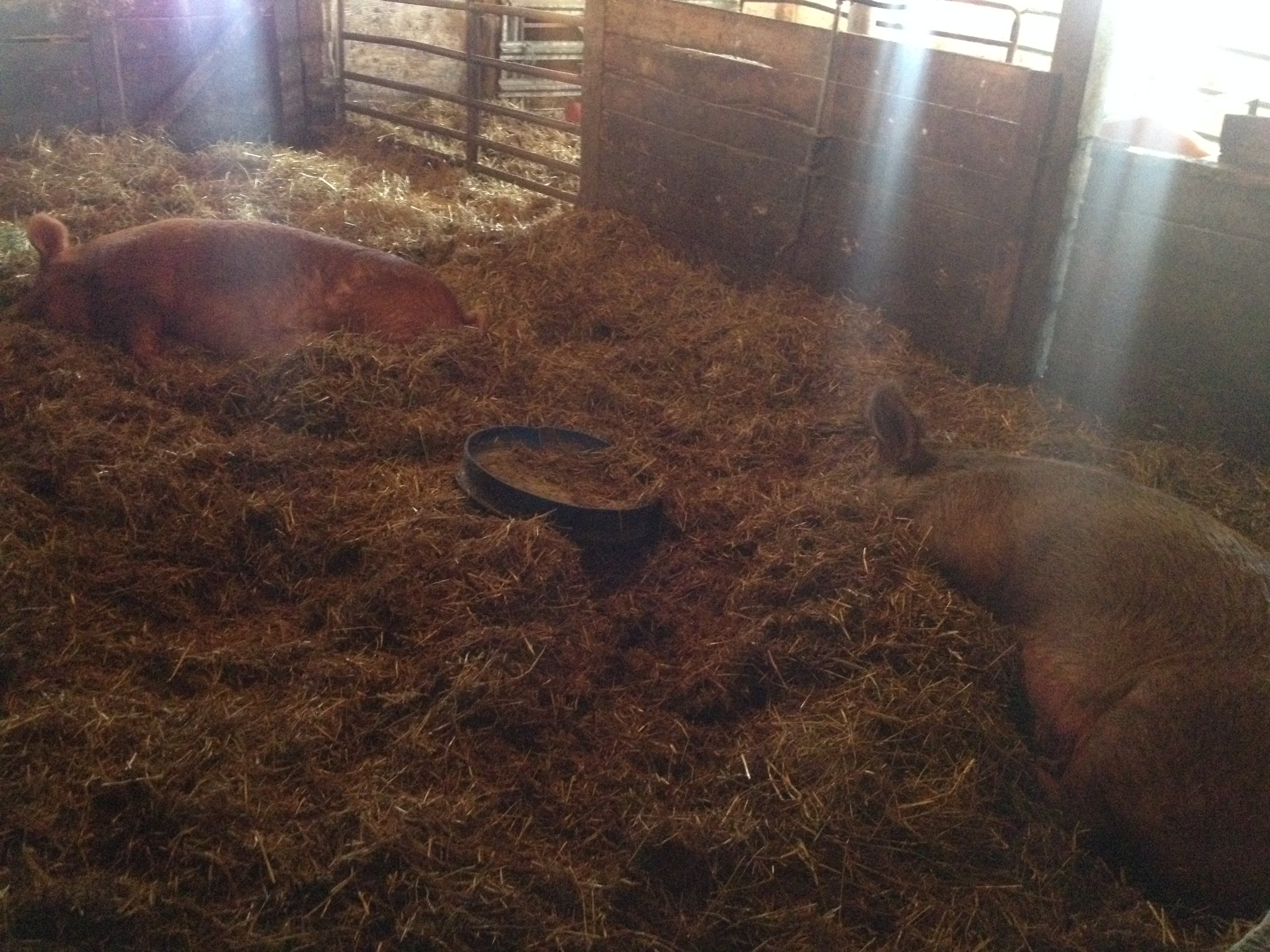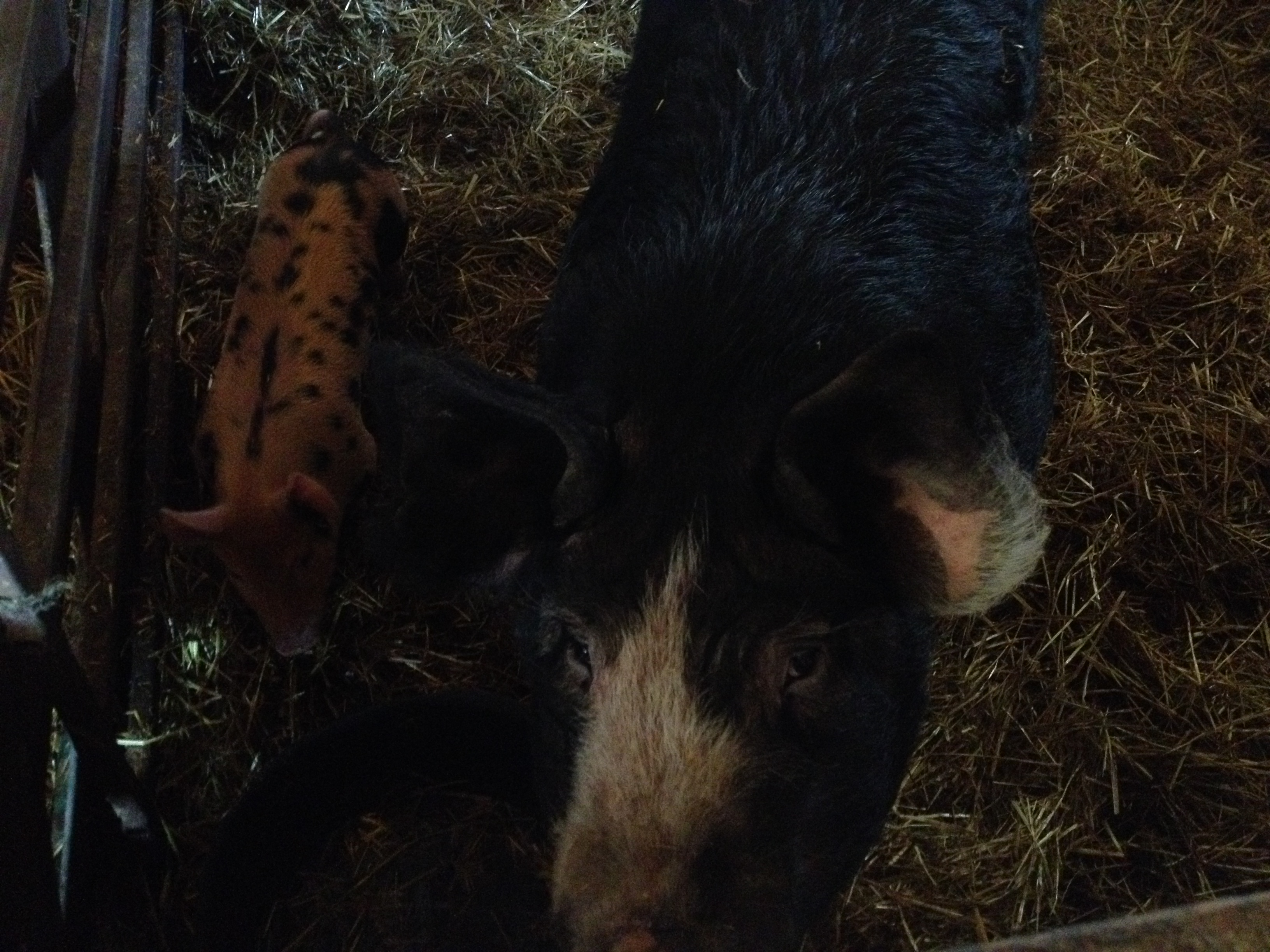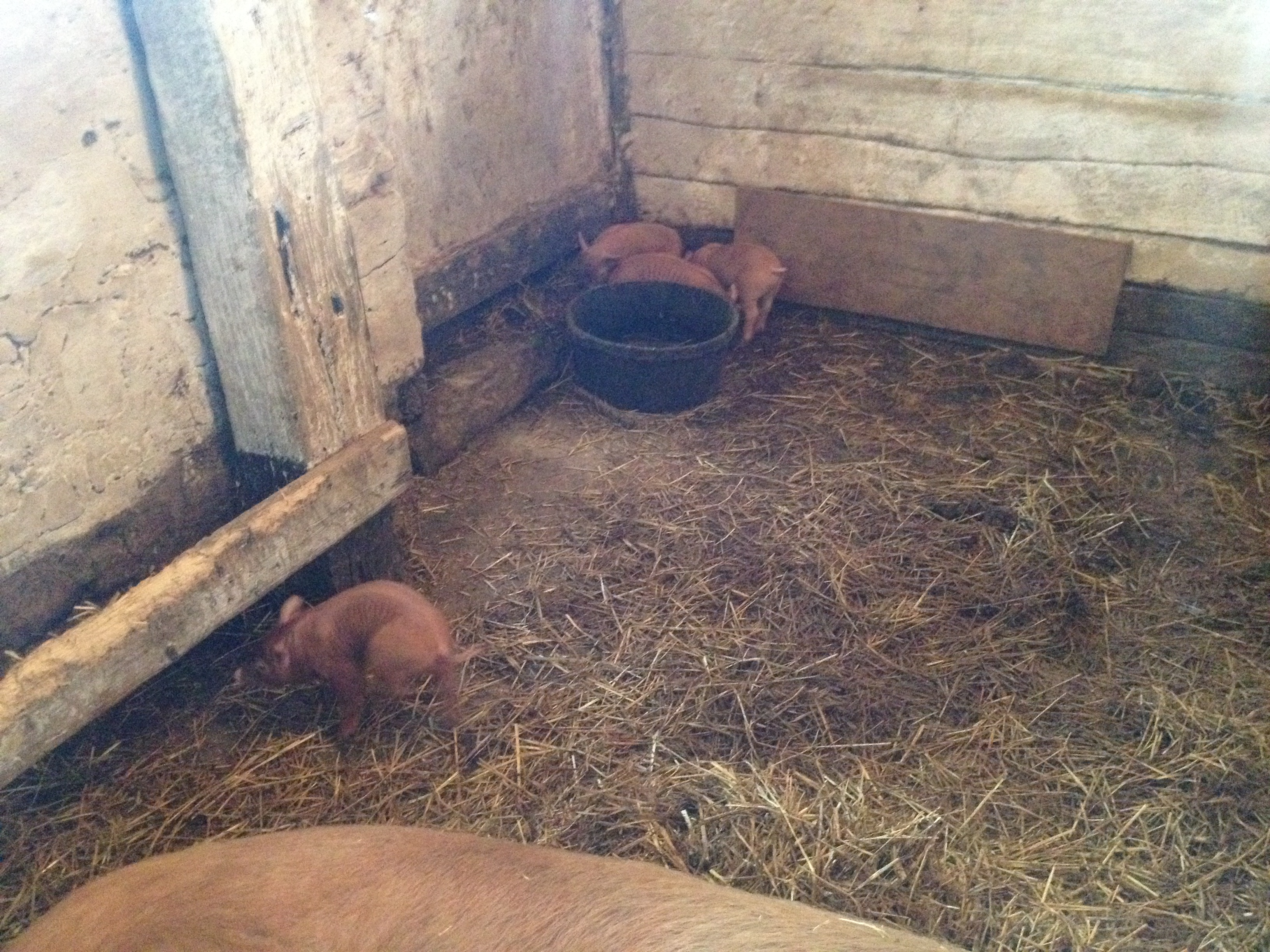 Daisy dog, enjoying the sun on top of her doghouse.Our Happy little Meat Chicks in their brooder. all warm and cuddly. Come visit!Buddy. Our Mini Stallion. looking forward to green green grass.All my little chicks in the chicken tractor till the new digs arriveAlice, our Canadienne-Swiss dairy cow and Whimsical, our Galloway Cow in calf chumming by the hay feeder.Bronwyn and Lenny, cavorting at the water.These are some new piggies we bought from a farmer near Terracotta. Happily waiting to go outside and enjoying the sun.Bella the Berkshire and her one Very healthy Piglet, Bertha. they love attention.Its dark, but its where this muscovy decided to make her nest. Expect ducklings soon!Penny Lane and Kevin Bacon sleeping the day away in their nests.This is a new guy from a friends farm who needed a new home for him. He’s cute and spotted and he jumps!Ruby’s Piglets exploring…Checking out the food…Having a snack.Mom lays there and they play.Close up of one of the new piglets. Tamworth.One of our feral hens. She has 7 chicks following her about. She is so very protective, a very good mama, i have high hopes for her natural raising skills. I just need to keep the cats well fed.The Formerly- Feral Barn Cats. One-eye. She’ll always be fearful I think.Trixie. She is such a sweetheart, when you get to know her.