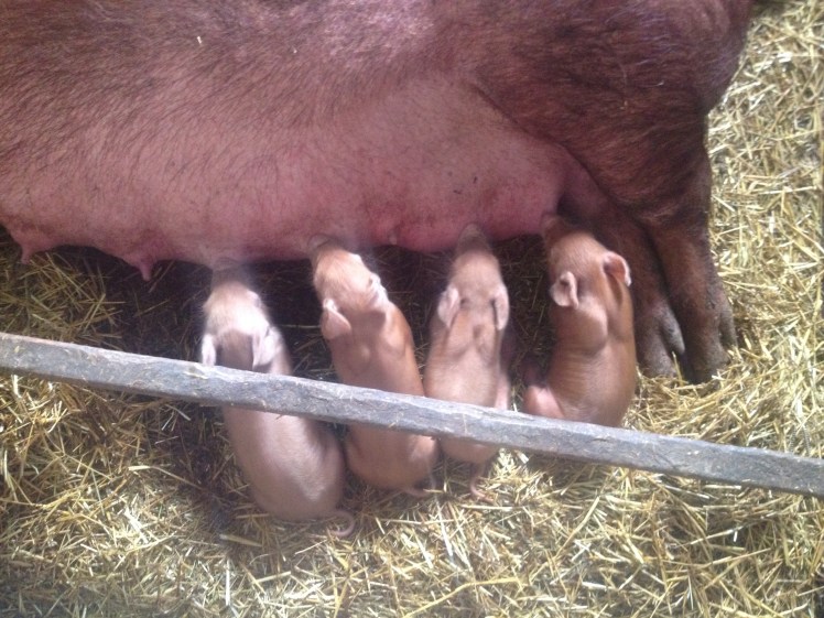 New piglets! New weaners! New duckies! Piggies outside. Chickies outside. Garden growing well.