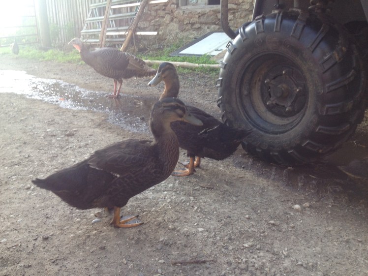 Everyone is well. Pigs. Chickens. Turkeys. Ducks. Cows. Horse. Cats. And kittens.
