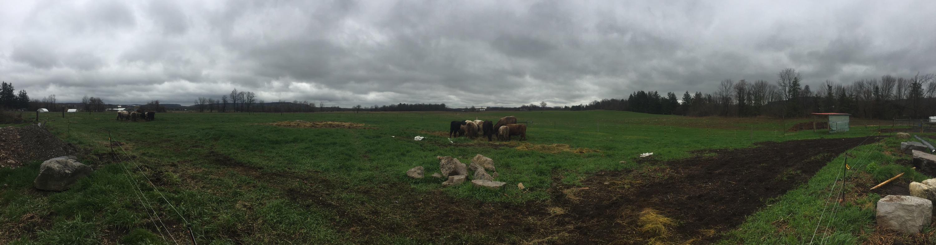 The cows don’t mind the rain at all, they are out enjoying their time on the grass eating grass.