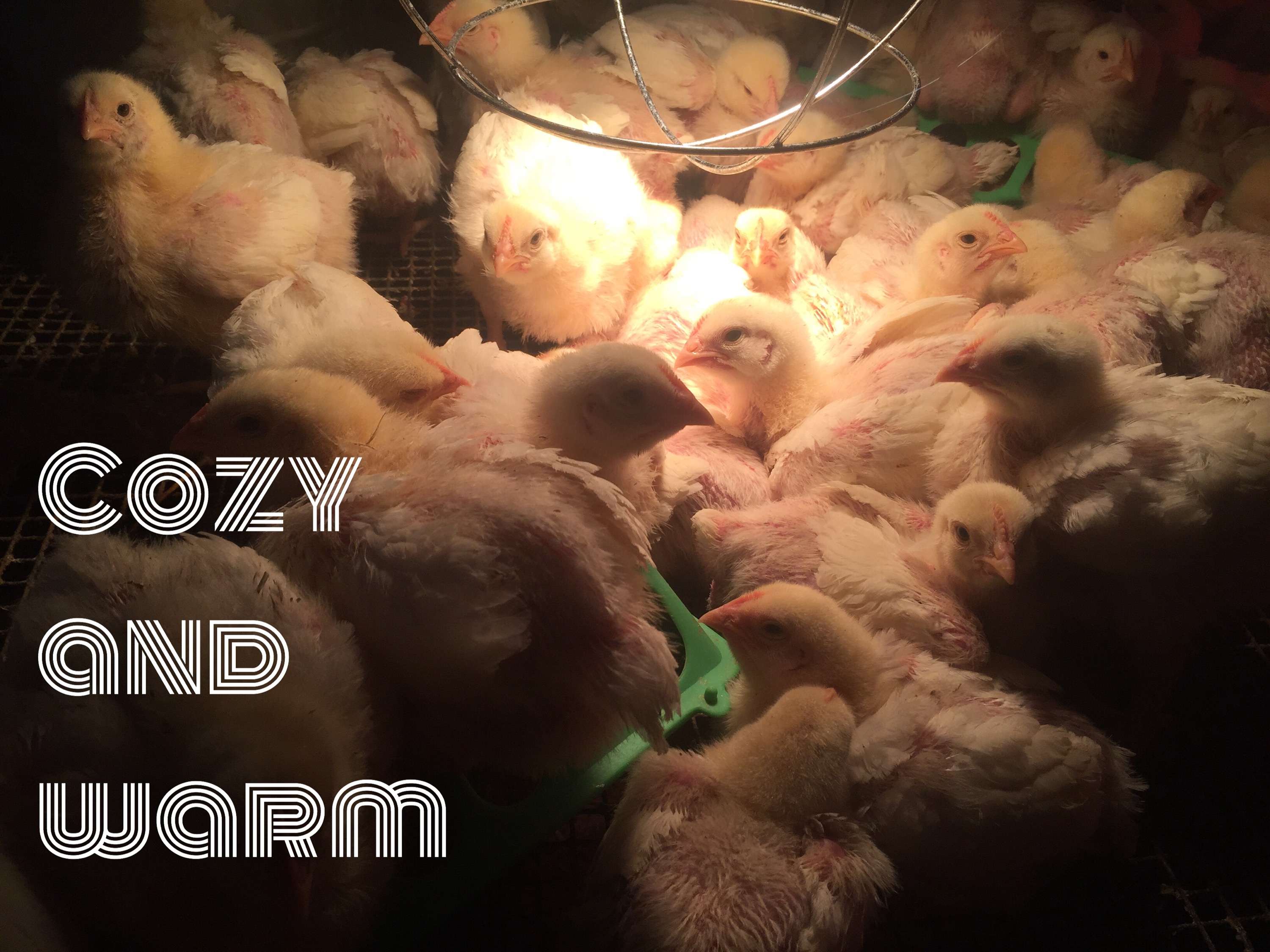 The meat birds are still in the barn. Everyone is doing well and they’re looking forward to getting outside on the grass next week.