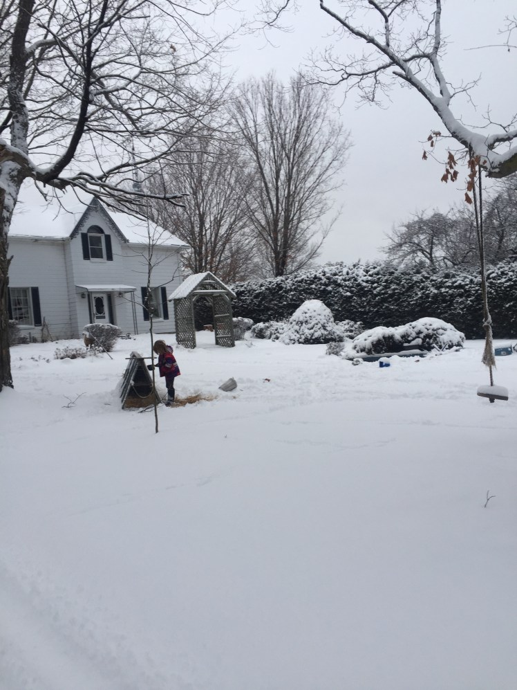 We had just eaten through half of dinner when Andrew asked if I’d heard about the feed delivery. I totally forgot about it, what with all the snowman making and everything.