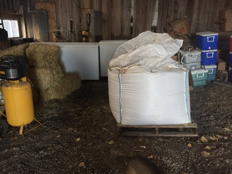 So, with our new feed suppliers, new feed delivery and storage systems follow. Well. We broke our plastic grain bin during the move so that’s not an option at the moment. I’ve been buying by the bag, which makes SO many wasted bags ( they use plastic/ papers ones I haven’t found many uses for yet). We do have a granary in the barn but are not keen to start feeding the rodents and therefore rodent poop to our animals. Hm.